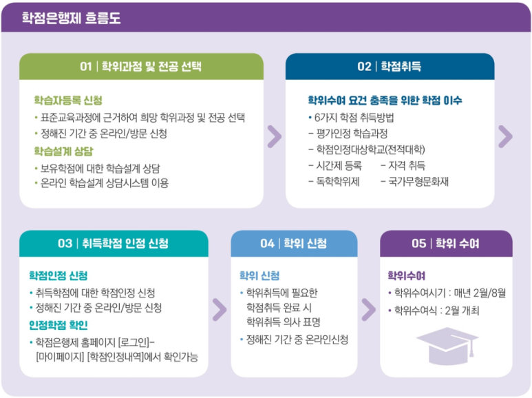 학점은행제는 대학교와 비슷하기 때문에 나름의 입학 절차가 진행 방식이 있는데, 위 그림처럼 프로세스를 가져요. 처음엔 굉장히 복잡한데 플래너를 잘 만나면 알아서 처리해 준답니다.