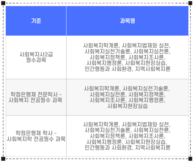 사회복지사2급 자격증에 도전 혹은 관심 있나요? 사회복지사로서 첫걸음을 떼기 위해서는 필수과목을 잘 이해하는 것이 정말 중요하다 생각합니다. 10년 차 학점은행제 플래너로서 가장 중요하게 설명하는 부문이기도 하고요.