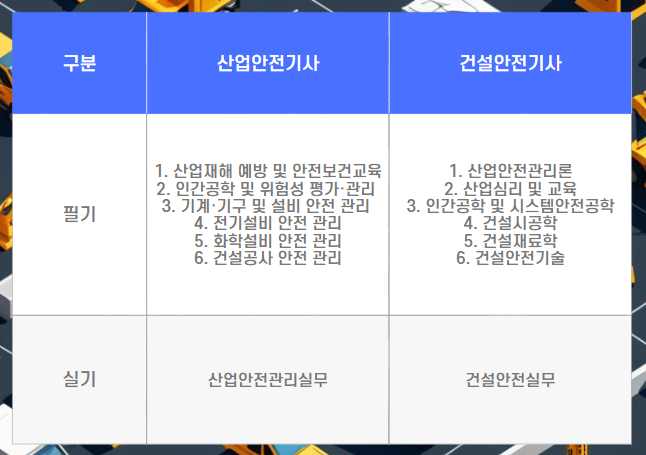 2) 산업안전자격증 종류 대표 2가지: 산업안전기사와 건설안전기사