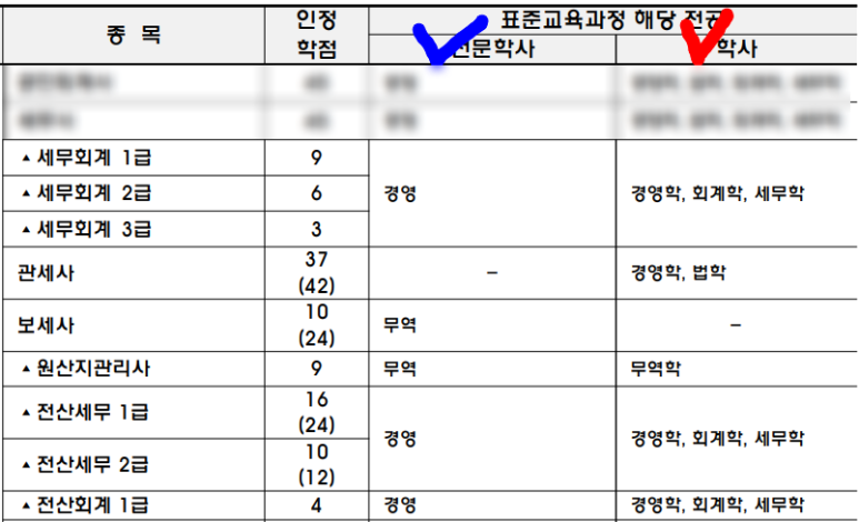 혹시 회계관리1/2급, 전산세무, 전산회계운용사, TAT2급 이런 것을 보유하고 있나요? 그렇다면 학위 취득에 굉장한 도움이 됩니다!