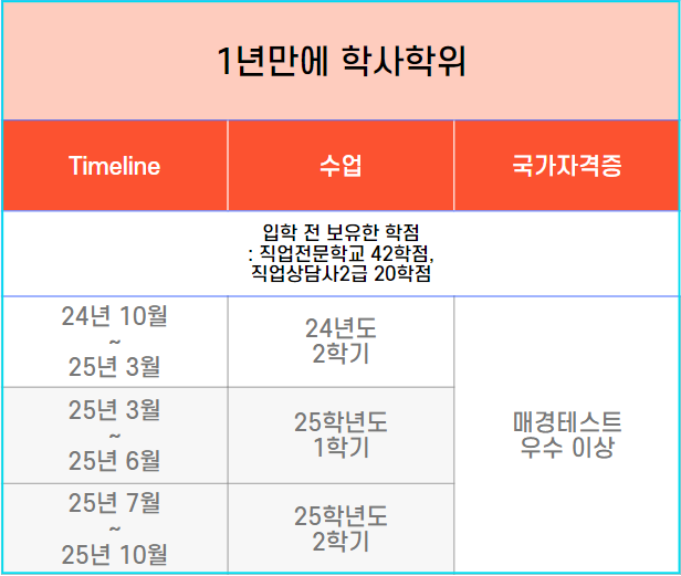 “회사에서 4년제 졸업장을 취득하라는데, 1년 만에 끝내고 싶어요.”