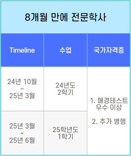※ 24학년도 2학기 10~11월 개강 기수는 2년제 졸업장을 초고속으로 취득할 수 있습니다.