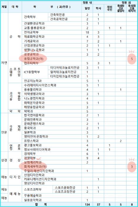 융합공학과 5명, 회계세무학과 3명입니다. 너무 적다구요? 이건 신입학이 아니라 편입학입니다.