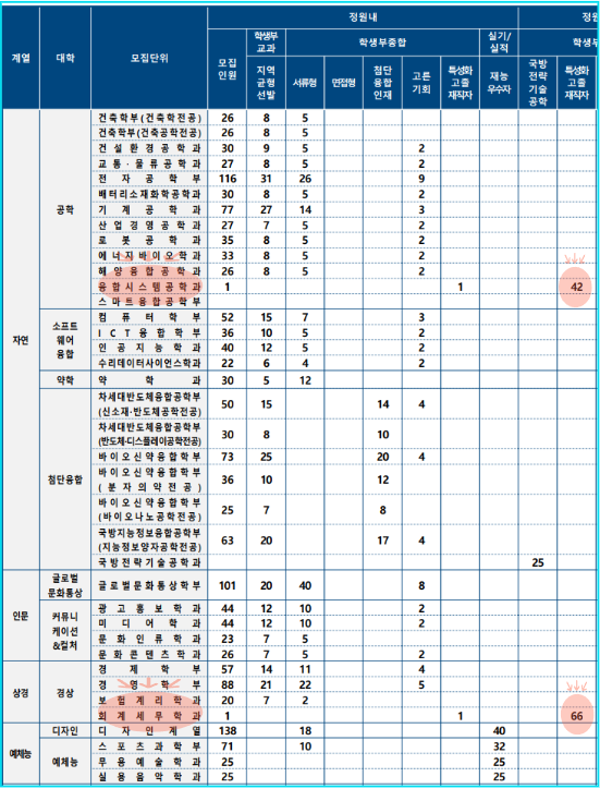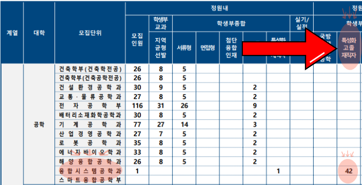 잠깐, 앞에 첨부한 사진을 조금만 더 확대해봅시다. 수시와 정시 모집요강을 보면 사실 집중하기 힘들어요. 온갖 어려운 용어가 나열돼있으니 말이죠. 눈을 뜨고 다시보면 특성화고졸 재직자 전형이라고 나와 있습니다.